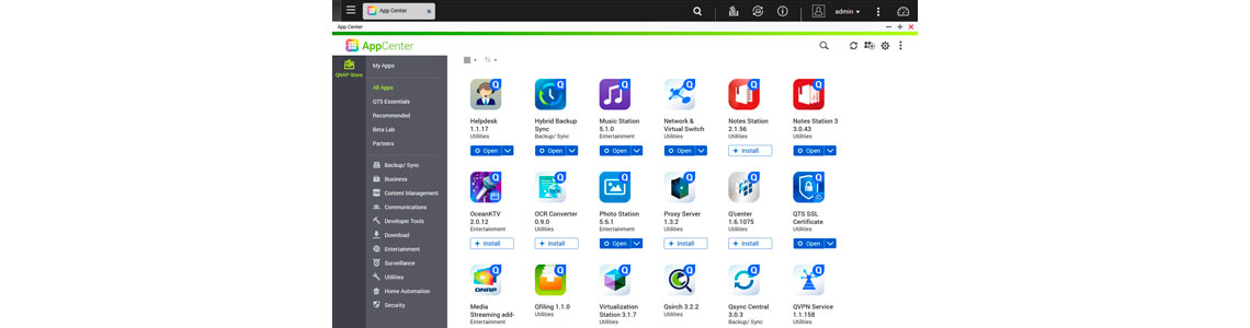 O QTS App Center também oferece uma ampla gama de aplicativos da Qnap e de programadores autônomos confiáveis para ampliar a funcionalidade e as possibilidades do storage TS-1635AX.