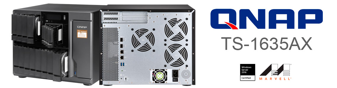 O Qnap TS-1635AX é equipado com um processador quad-core Marvell ARMADA 8040 ARMv8 Cortex-A72 de 64 bits e 1,6 GHz que oferece uma grande capacidade de armazenamento e é capaz de executar diversos aplicativos para ajudar as empresas a crescer à medida que seus dados aumentam. O storage TS-1635AX possui 12 baias de 3,5 polegadas, quatro baias de 2,5 polegadas e dois slots M.2 SATA para criar uma solução de armazenamento de alta capacidade e alto desempenho.
