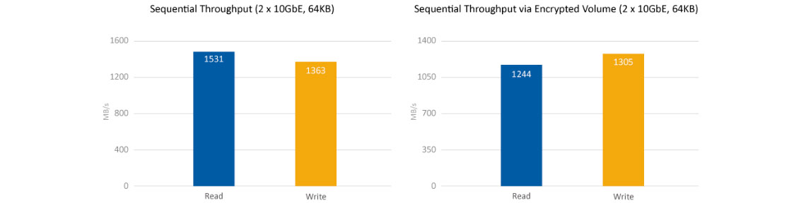 Com a criptografia acelerada com AES-NI 256 bits possibilita até 1305 MB/s melhorando o desempenho e segurança do sistema do servidor QNAP.