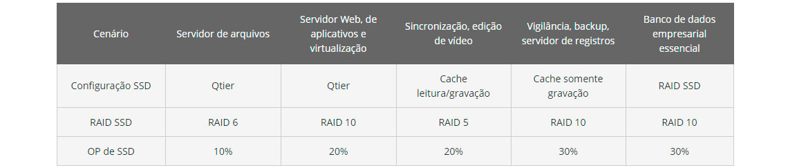 O storage suporta o excesso de provisionamento (OP) definido por software SSD que permite alocar espaço OP adicional (de 1% a 60%) para otimizar velocidades de gravação aleatórias.