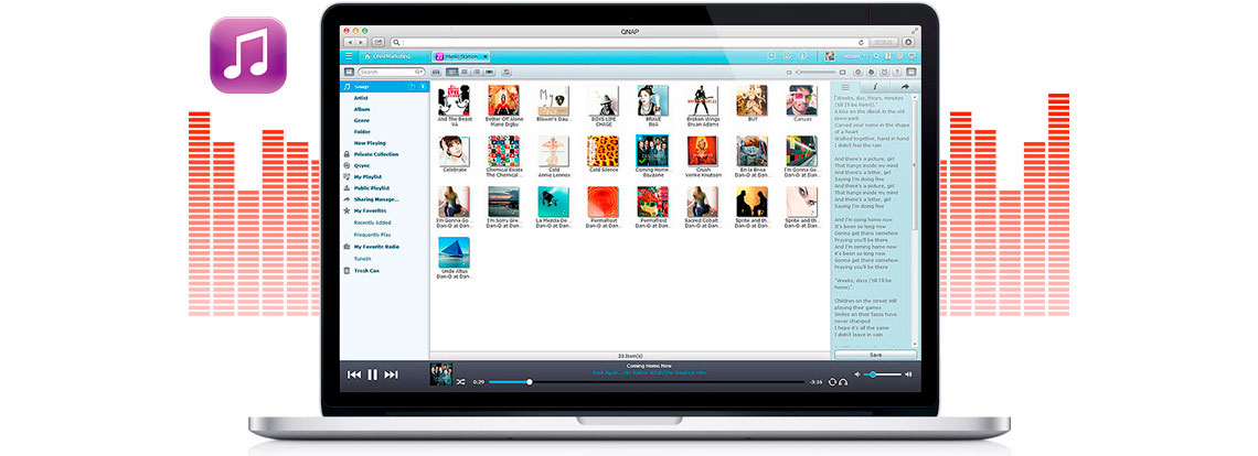 O QTS Music Station, é um aplicativo que oferece uma central de música disponível na nuvem. Com apenas alguns cliques é possível acessar e executar qualquer faixa do álbum compartilhado de músicas de qualquer lugar.