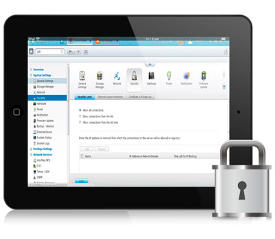 Para assegurar dados de acessos não autorizados, o TS-221 tem grande variedade de opções de segurança como acesso criptografado, bloqueio de IP entre outros.