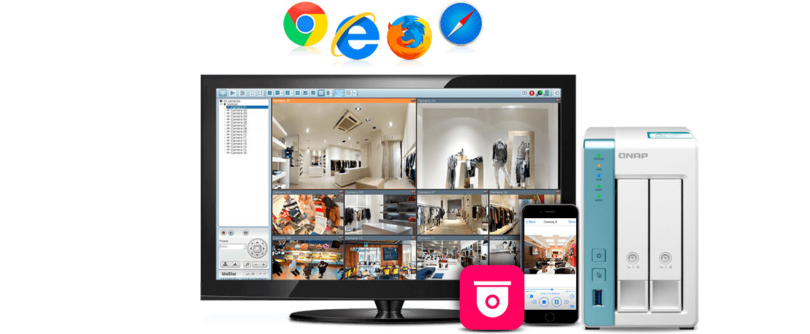 Além disso, o aplicativo Vmobile da Qnap permite gerenciar os canais monitorados em qualquer lugar através dos dispositivos iOS ou Android.