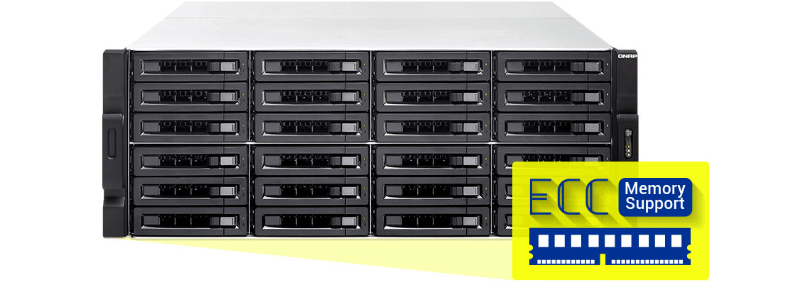 Através da memória ECC, o TS-2483XU-RP pode detectar e arrumar erros de memória de um único bit à medida que eles ocorrem para evitar tempo de inatividade e corrupção de dados.