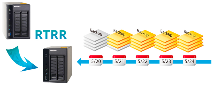 O TS-453-A possui a função RTRR (Replicação remota em tempo real) para backup de dados em tempo real ou agendado apontado para outro Qnap NAS ou FTP remoto, sincronizando arquivos para pastas remotas a partir de pastas locais.