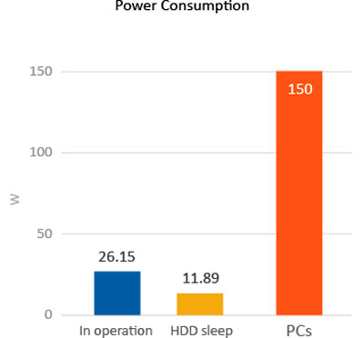 Consumo de energia (W) | Espera do HDD: 11,89W Operação típica: 26,15W (com HDs de 4 x 2 TB instalados) |