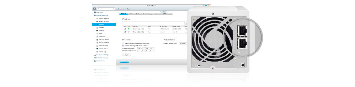 Vários módulos de de combinação de portas são suportados pelo TS-431+, possibilitando que os administradores de TI gerenciar a agregação de link para aumentar a capacidade total de transmissão de arquivos.