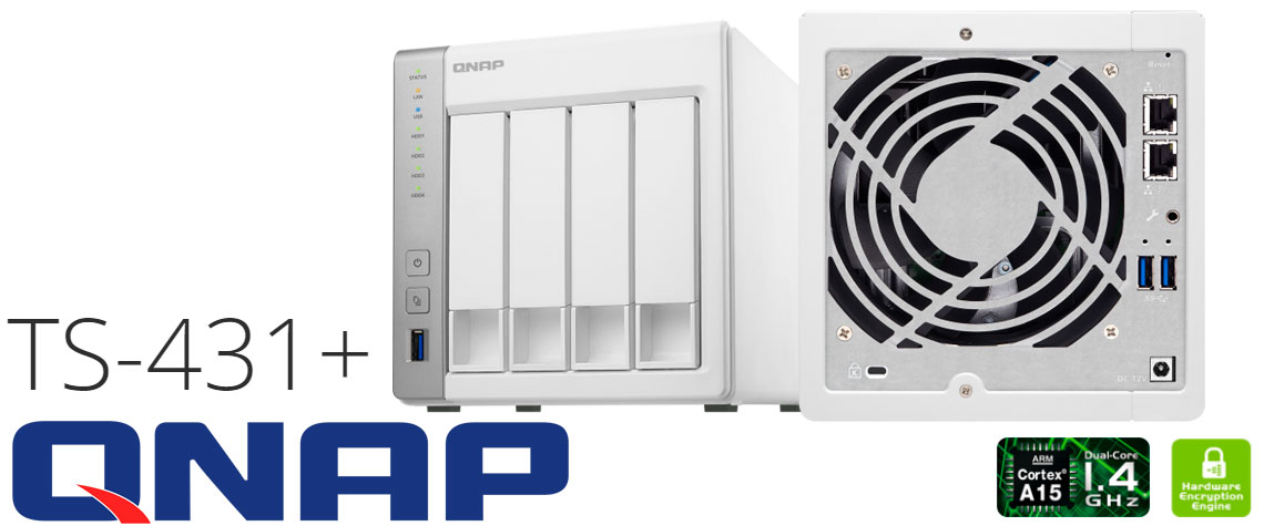 O Qnap TS-431+ é um storage NAS desenvolvido para pequenos escritórios e ambientes residenciais, oferece 4 baias hot-swappable para discos SATA/SSD de 2,5 x 3,5 polegadas.