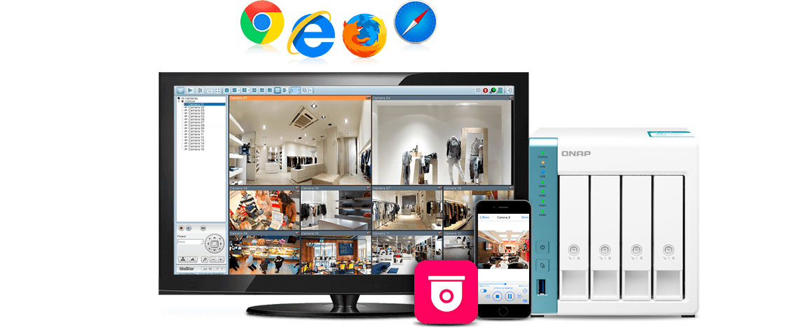 Além disso, o aplicativo Vmobile da Qnap permite gerenciar os canais monitorados em qualquer lugar através dos dispositivos iOS ou Android.