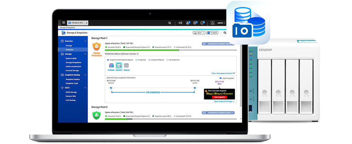 Outros recursos do TS-431K são o backup com snapshot, facilitando a produtividade de usuários que não em tempo a perder com backup. O Qnap ainda possui integração com serviços de diretório como Microsoft Active Directory (AD) e Linux LDAP.