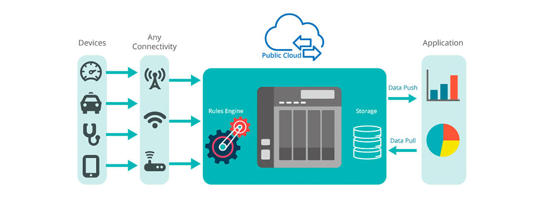 O Container Station suporta a plataforma de Containers QIoT para estruturar ambientes de IoT e a implantação na sua nuvem privada de IoT, melhorando micro serviços e aplicações para criar novas oportunidades.