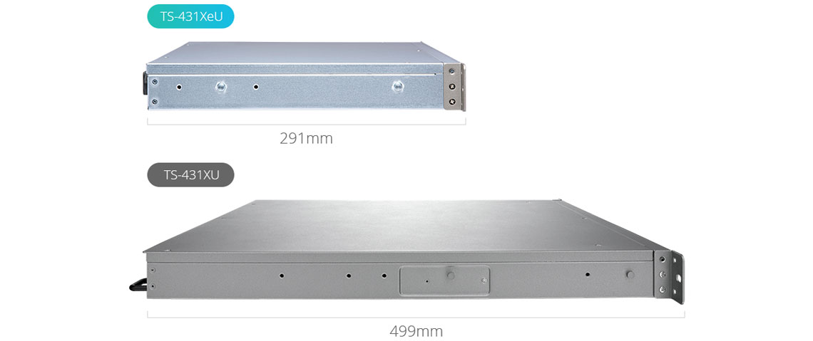 O TS-431XeU tem uma profundidade de 11,46 polegadas (291 mm), menor do que um NAS rackmount de 4 baias tradicional.
