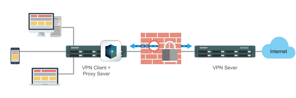 E como cliente VPN, é possível se conectar com outros servidores ou redes virtuais privada para transmissão de arquivos segura. Também é possível conectar dispositivos ao seu NAS e ao servidor em casa para acessar dados na LAN; Via Cliente VPN no seu NAS é possível se conectar a servidores em países estrangeiros para acessar serviços restritos a nível regional.