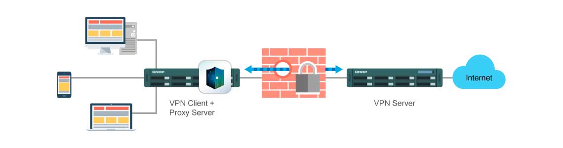Com o novo aplicativo QVPN que integra configurações para servidor VPN e cliente VPN, o TS-431XU pode ser usado como um servidor VPN com suporte L2TP/IPsec, OpenVPN e PPTP, permitindo que o usuário acesse com segurança os dados compartilhados em redes locais privadas. Também pode ser usado como um cliente VPN para se conectar a outros servidores VPN (conectar vários servidores ao mesmo tempo é possível) ou redes privadas virtuais através de PPTP e OpenVPN para transmissão segura de dados. O usuário pode conectar dispositivos ao seu NAS e ao servidor VPN em casa para acessar dados na LAN, por meio do cliente VPN em seu NAS, por exemplo, é possível se conectar a servidores VPN em outros países para acessar serviços regionalmente restritos.