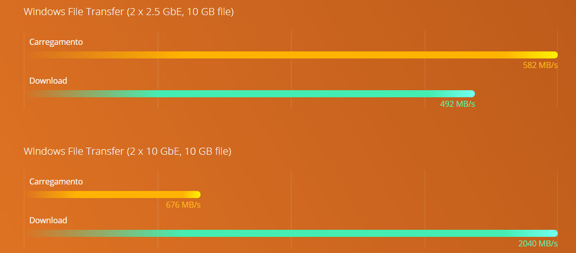 Adaptador de rede: Adicione portas de rede 2,5GbE/5GbE/10GbE extras para melhorar as tarefas que exigem alta largura de banda, como transmissão de grandes volumes de dados e backup/restauração de alta velocidade.