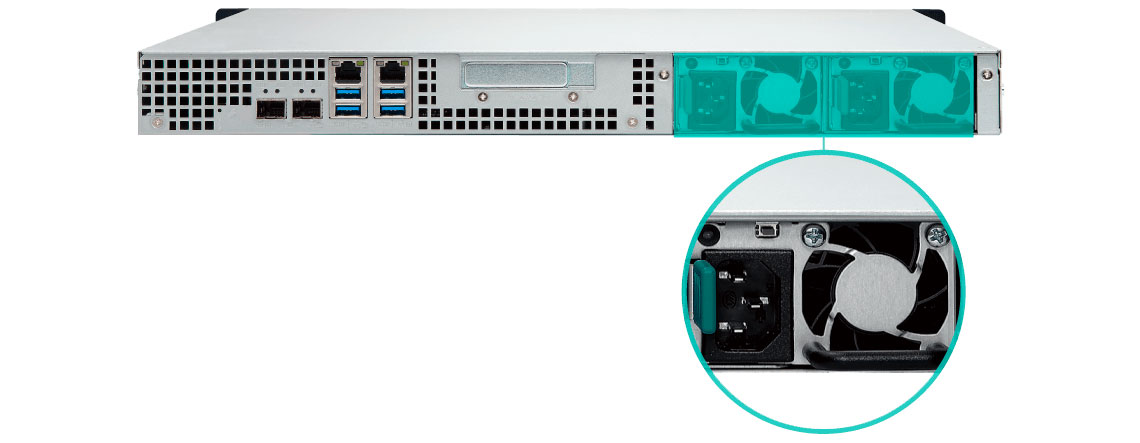 Aliado com portas dual 1000BASE-T e dual 10GbE SFP+, possibilita o trabalho ininterrupto do NAS, garantindo uma solução de armazenamento segura e veloz.