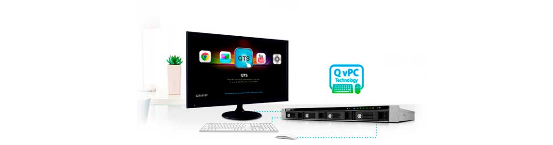 O NAS TS-451U possui a tecnologia exclusiva QNAP QvPC, que consolida integração VM, transcodificação de multimídia, saída HDMI e integração de nuvem, além de permitir utilizar o NAS como um PC, bastando conectar um teclado, monitor e mouse.