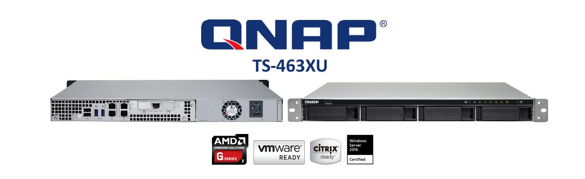 O TS-463XU é uma solução de armazenamento de dados rackmount Qnap com 4 baias hot-swappable, processador Quad Core, 4GB de memória RAM, 4 portas LAN Gigabit e uma porta 10GbE.