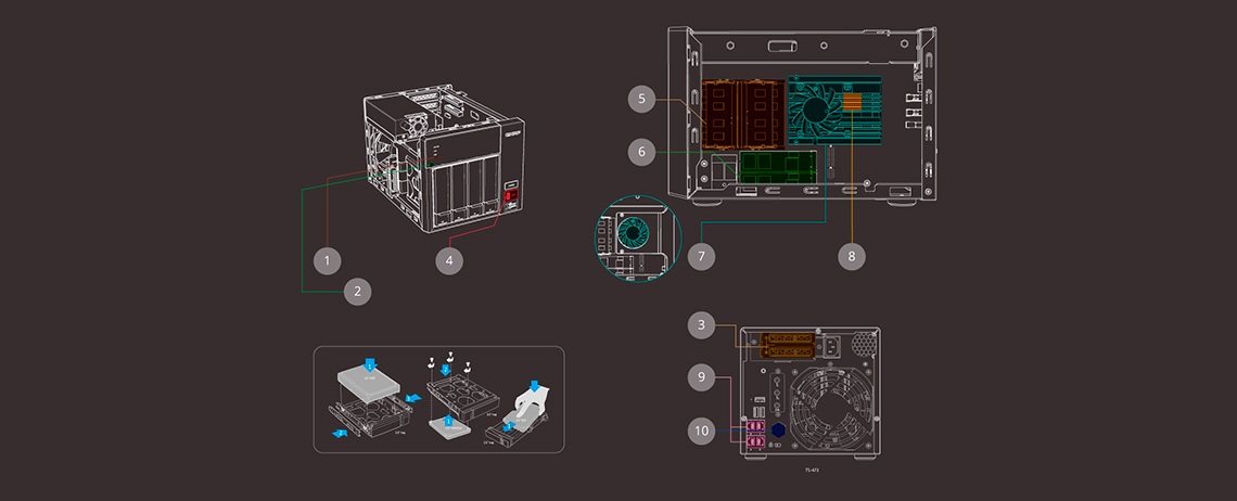 Com itens de tecnologia de ponta, o TS-473 conta com hardware otimizado e recursos que ampliam o seu desempenho geral do sistema.