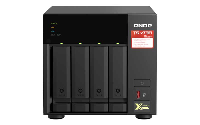 Equipado com o processador AMD Ryzen quad core, 8GB de memória DDR4 (sendo 64GB expansível), 2 Slots PCIe, 2 portas RJ45 de 2,5 GbE, 2 slots M.2 NVMe SSD para a tecnologia Qtier e SSD Caching permitem a otimização de armazenamento constante.