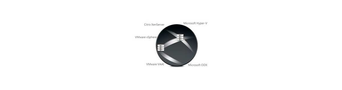 O storage Qnap suporta VMware VAAI e Microsoft ODX para reduzir processamento dos servidores ESXi. Os plugins vSphere Client e o SMI-S Qnap Provider disponibilizam eficiência operacional otimizada na gestão das aplicações de virtualização.