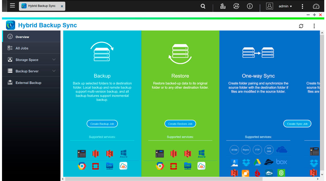 O Hybrid Backup Sync auxilia a realizar backup, restaurar e sincronizar arquivos de/para dispositivos externos locais, NAS remotos e serviços de nuvem pública.