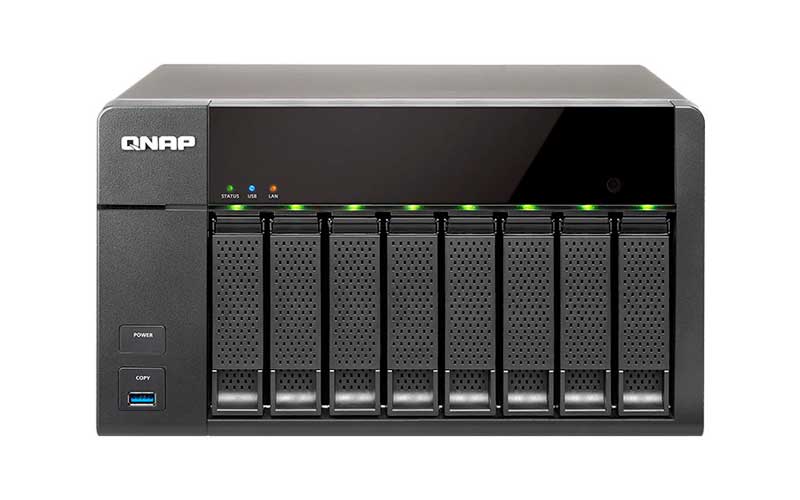Com um processador Intel Celeron dual-core 2.41GHz, 2GB DDR3L RAM (expansível até 8GB), o storage 24TB Qnap suporta 8 discos SATA 6Gb/s até 8TB cada, possui duas portas Gigabit LAN e uma saída HDMI. Ele é um 8 bay NAS que oferece até 220MB/s de velocidade de gravação e leitura.
