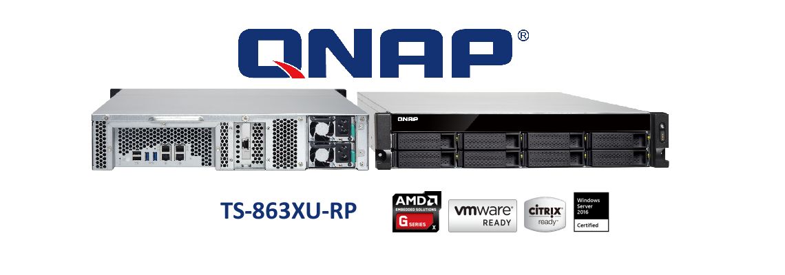 O TS-863XU-RP é equipado com um processador AMD G-Series GX-420MC quad-core de 2.0 GHz de 64 bits com 4GB DDR3L (expansível até 16GB), uma porta 10GBE, quatro portas Gigabit Ethernet e suporte para cache SSD para excelente desempenho multitarefa.