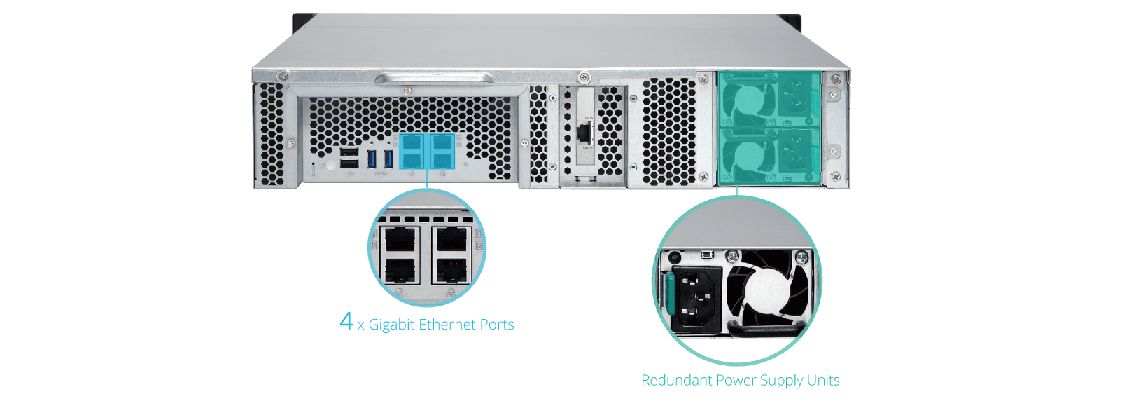 Equipado com conexão 10GbE e fonte de alimentação redundante, o TS-863XU-RP é alimentado por um processador quad-core AMD G-Series que fornece alto desempenho e velocidade de transferência de arquivos excepcional.