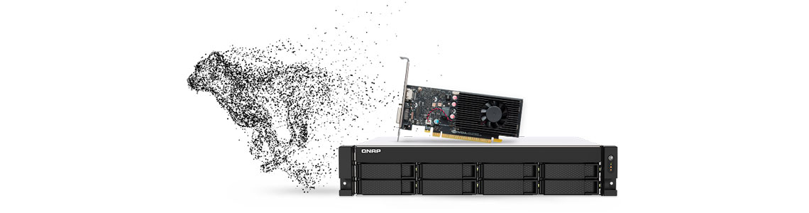A instalação de uma placa gráfica incrementam o desempenho de aplicativos para edição de vídeo, transcodificação de vídeo 4K, processamento de imagem em QTS e o desempenho de máquinas virtuais por meio de passagem de GPU.