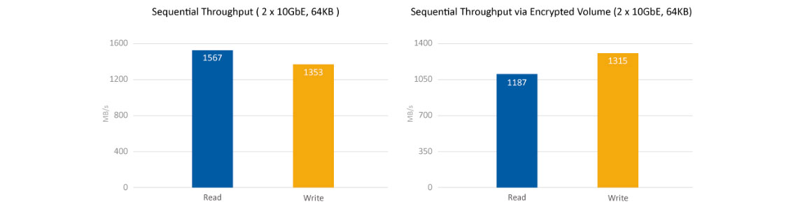 Enquanto o mecanismo de aceleração de criptografia AES-NI, que pode chegar até 1351 MB/s em volumes NAS, com criptografia de 256-bit AES.