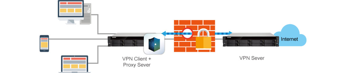 O TS-873U-RP também pode ser usado como um cliente VPN para conectar a outros servidores VPN ou uma rede privada virtual através do PPTP e OpenVPN, para uma transmissão segura.