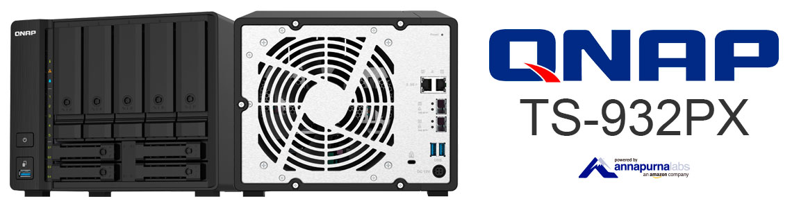 O TS-932PX Qnap é um storage 9 baias SATA (5x HDD e 4x SSD) que suporta hard disks ou módulos SSD, é equipado com processador quad-core 1,7 GHz, três portas USB 3.2, duas portas LAN 2.5GbE e duas conexões de alta velocidade 10GbE.