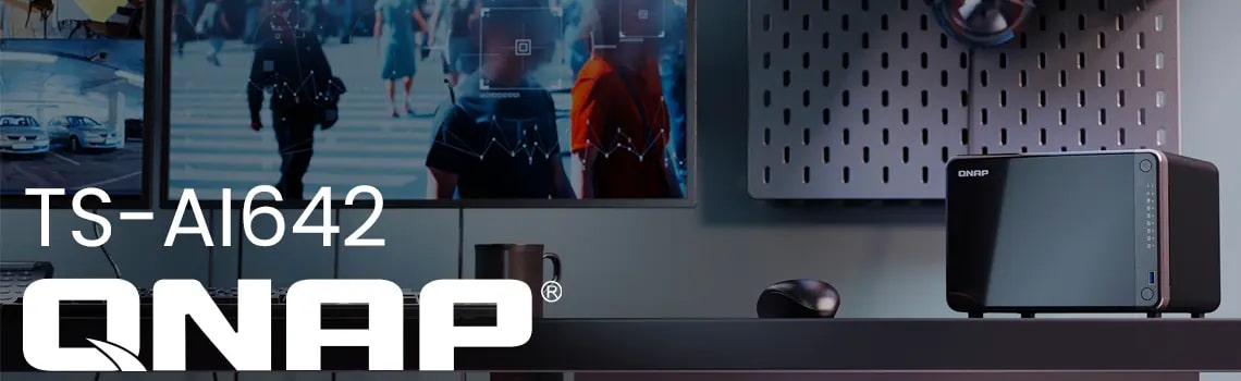TS-AI642 da Qnap é um storage NAS de 6 baias para discos SATA, hot swappable, processador ARM Cortex 8-core, 8GB de memória RAM, 3x portas LAN, 4x entradas USB, 2x saídas HDMI e 1x slot PCIe. Servidor de armazenamento ideal para backup, proteção de dados por snapshots e nuvem híbrida.