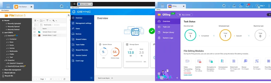 File Station: Compartilhe todos os arquivos no TS-AI642 e snapshots — tudo a partir do seu browser web. Pode também montar facilmente pastas NAS remotas e armazenamento em nuvem.