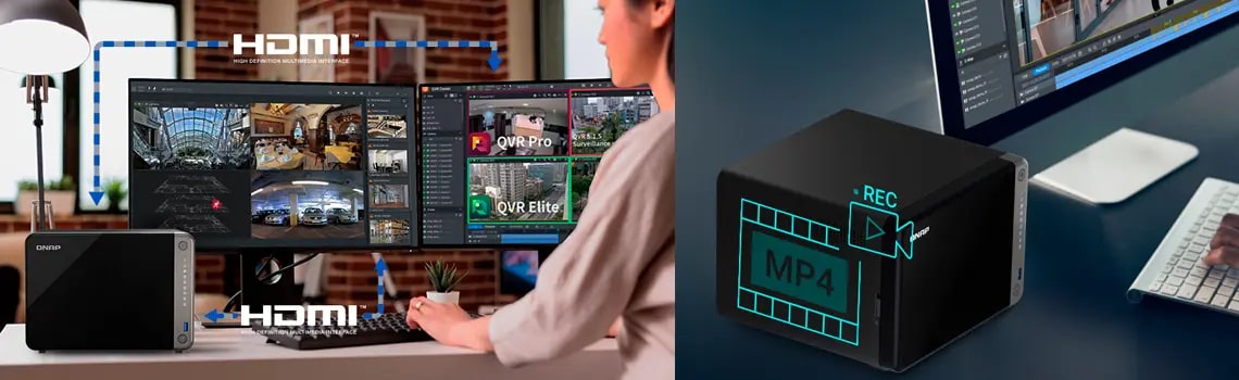 Conecte-se a monitores HDMI: O TS-AI642 possui saída HDMI dupla para reprodução direta de vídeo de vigilância em dois monitores, eliminando a necessidade de uma estação de trabalho dedicada.
