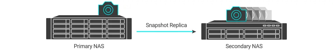 Fazer backup de Snapshots do NAS: Use o Snapshot Replica para fazer backup de snapshots do NAS em outro NAS e recuperar quando necessário.