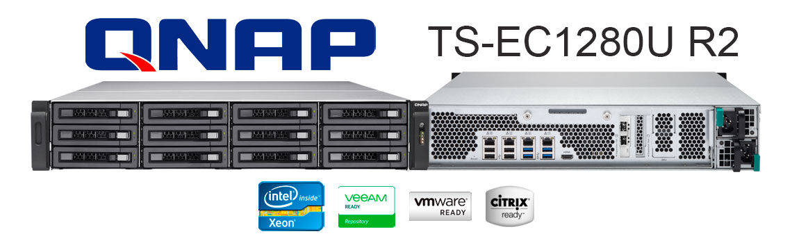 O TVS-EC1280U da Qnap possui 12 baias para discos SAS/SATA/SSD de 2,5 e 3,5 polegadas e hot swappable. Equipado por um processador Intel Xeon E3, oferece compartilhamento de arquivos em várias plataformas, soluções abrangentes de backup, aplicativos iSCSI e virtualização e funções comerciais mais práticas. Além de ser primeiro NAS unificado do mundo com suporte a Auto Tiering para oferecer otimização contínua de dados em unidades SSD de alto desempenho. Com o poderoso sistema operacional QTS, o servidor atua como uma solução de armazenamento unificado e hierárquico confiável, escalável e imbatível para as empresas.