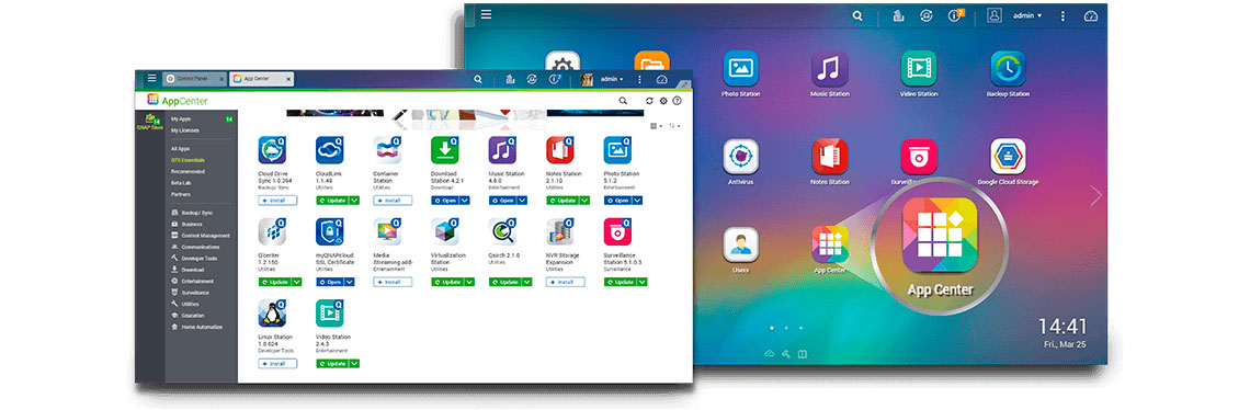 O TVS-EC1680U-SAS-RP oferece um App Center interno que fornece mais de 100 aplicativos sob demanda desenvolvidos pela QNAP e por terceiros, incluindo ferramentas para backup / sincronização, negócios, gerenciamento de conteúdo, comunicações, download, entretenimento e muito mais. É também um local centralizado para gerenciar e atualizar aplicativos instalados. Além disso, a plataforma de desenvolvimento da QNAP adota o espírito de código aberto para permitir que os desenvolvedores criem os próprios aplicativos, adicionando potencial ilimitado para o servidor.