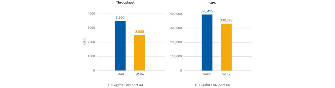 O TVS-EC1680U-SAS-RP oferece 4 portas Gigabit Ethernet embutidas e suporta rede de alta velocidade 10 Gigabit, instalando o adaptador de rede 10GbE. Se 10GbE for insuficiente para algumas cargas de trabalho, o storage suporta placas adaptadoras Mellanox ConnectX-3 Pro com conectividade Ethernet 10/40/56 Gigabit para obter a solução de interconexão Ethernet de computação e uma solução de armazenamento mais econômica. Ajuda a obter um rendimento significativamente mais alto para aplicativos de E / S incorporados de alto desempenho e aceleração da virtualização. O ambiente corporativo pode se beneficiar muito da rede de armazenamento rápida e flexível do TVS-EC1680U-SAS-RP, pronto para 40GbE, para melhorar o desempenho de TI de missão crítica.