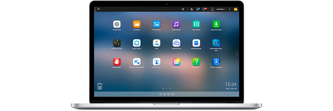 Graças à interface de usuário intuitiva do QTS, a experiência com o NAS é mais inteligente. O design plano moderno otimiza os tempos de carregamento, e a área de trabalho inteligente permite encontrar rapidamente as funções desejadas, criar atalhos da área de trabalho ou atalhos de grupo, monitorar informações importantes do sistema em tempo real e abrir várias janelas de aplicativos para executar várias tarefas simultaneamente, trazendo maior desempenho de trabalho.