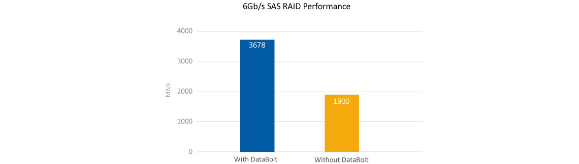 Gerenciando a tecnologia DataBolt, o TVS-EC1680U-SAS-RP pode fornecer o dobro da taxa de transferência para unidades SAS de 6 Gbps, agregando automaticamente a largura de banda das unidades 3Gbps e 6 Gbps para utilizar totalmente 12 Gbps, acelerando a infraestrutura existente.