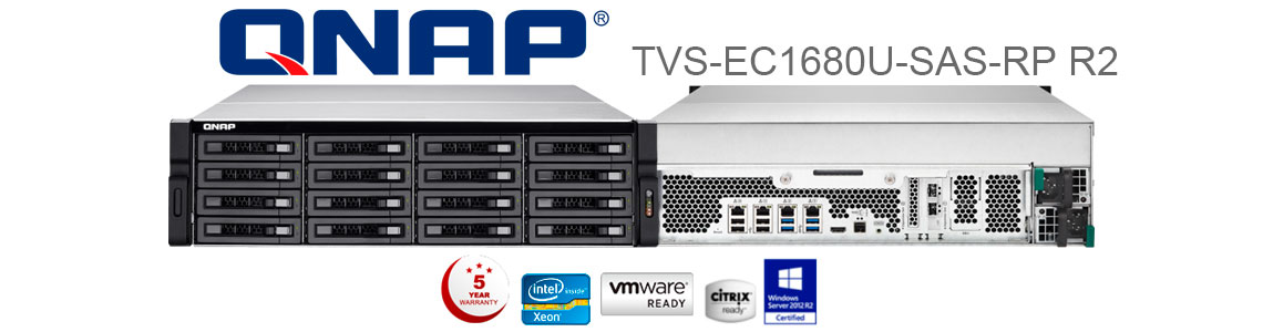 O TVS-EC1680U-SAS-RP da Qnap possui 16 baias para discos SAS/SATA/SSD de 2,5 e 3,5 polegadas e hot swappable. Equipado por um processador Intel Xeon E3, oferece compartilhamento de arquivos em várias plataformas, soluções abrangentes de backup, aplicativos iSCSI e virtualização e funções comerciais mais práticas. Além de ser primeiro NAS unificado do mundo com suporte a Auto Tiering para oferecer otimização contínua de dados em unidades SSD de alto desempenho. Com o poderoso sistema operacional QTS, o TVS-EC1680U-SAS-RP atua como uma solução de armazenamento unificado e hierárquico confiável, escalável e imbatível para as empresas.