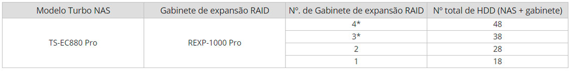 O número máximo de unidades disponíveis conectando os gabinetes de expansão QNAP: