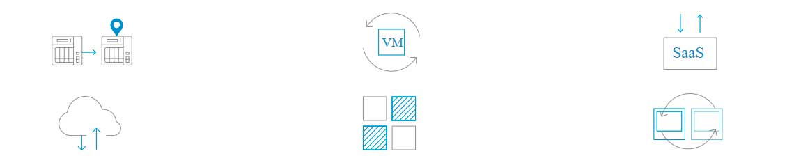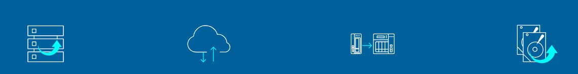 Backup em nuvem para NAS: Use o Hybrid Backup Sync para fazer backup de dados NAS no myQNAPcloud Storage ou em outro espaço de nuvem convencional. Para backup em armazenamento em nuvem de objetos, o VJBOD Cloud é especialmente útil para reduzir o uso de largura de banda e o tempo de backup.