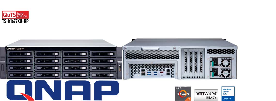 O servidor é equipado por um processador AMD Ryzen 7 3700x 8core e 32GB de memória RAM DDR4 (expansível até 128GB). Os recursos oferecidos pelo TS-h1677XU-RP Qnap atendem às demandas em tarefas versáteis, ou seja, sendo capaz de executar, de forma simultânea, várias máquinas virtuais.
