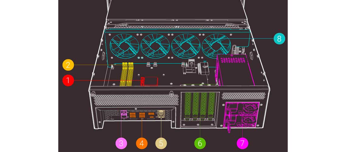 6 – 4 Slots de expansão PCIe suporta placas de expansão de rede 10GbE/25 GbE/40GbE, placas QM2, Placas Fibre Channel e placas de expansão SAS para maior potencial de aplicação;