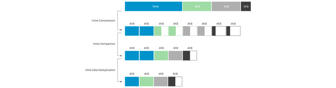 O QuTS hero é compatível com tecnologias de redução de dados baseados em blocos (abrangendo desduplicação, compressão e compactação integradas de dados), para reduzir o tamanho dos arquivos, conservar a capacidade de armazenamento e otimizar o desempenho.
