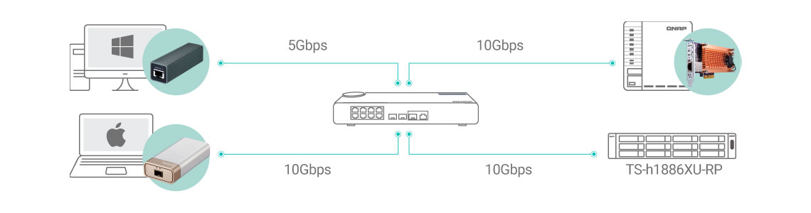 A tecnologia RoCE pode melhorar o desempenho do sistema e reduz o uso de CPU para aplicações que utilizam redes Ethernet, tornando-se ideal para transferência de dados com baixa latência e alta velocidade. A Qnap também oferece diferentes opções de switches 10GbE, ajudando as organizações a implementar ambientes seguros de rede, escalonáveis e com alta velocidade de armazenamento.