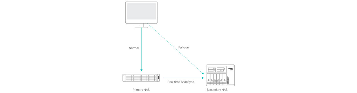 O SnapSync garante que tanto o NAS primário e secundário preservam dados idênticos, quando o usuário gravar os dados na origem, serão imediatamente gravados no destino. Se o NAS primário for desconectado, as configurações de privilégios dos NAS secundários podem serem ajustadas para garantir a operação contínua do sistema.